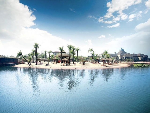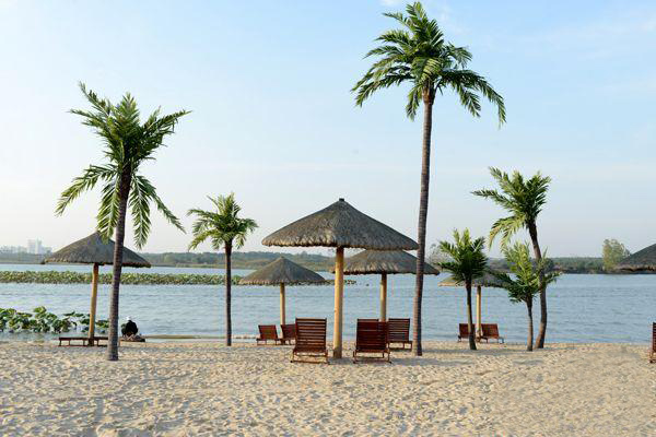 比如我們松濤工藝的特色案例——武漢世貿龍灣仿真椰子林,就是受當地開發(fā)商的邀請,在當地一個三面環(huán)水的小島上打造出一個世茂龍灣——馬爾代夫風情沙灘。該項目充分展現生態(tài)人居的理念,我們松濤工藝在設計、施工的過程中注重把美學藝術和實用性融入施工環(huán)境,在塑造完美景觀的基礎上保障經久耐看和使用壽命更長。所以我們公司所采用的椰子樹材料就有所不同,我們用鋼結構貫穿樹桿內部,底部加牢固定有鋼板和爆炸螺絲,可抗十級以上臺風。在塑造椰子樹橫臥水面狀態(tài)下的自然風景時,更是表現出松濤工藝不凡的設計和施工能力,一般傳統(tǒng)同行基本難以完成這類景觀藝術化的制作。