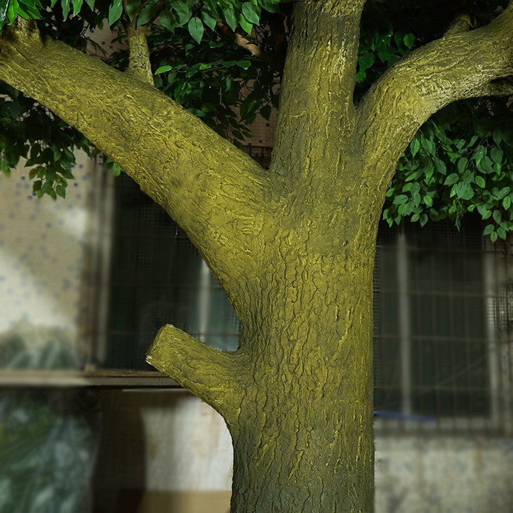 大型仿真樹榕樹樹形奇特,壽命長,根系發(fā)達,被人們稱為“獨木成林”的風景樹和風水樹。仿真榕樹的古典與現(xiàn)代酒店的豪華氣氛相映襯,自然景觀與現(xiàn)代酒店的完美融合,體現(xiàn)了酒店的獨特風格。由于高仿真擬態(tài)效果可以讓仿真榕樹達到以假亂真的境界,在景觀裝飾中,可以打破建筑物的呆板、僵硬,使其趨于自然,讓人有曲徑通幽之感,是比較適合以自然生態(tài)為主的園林景觀裝飾。